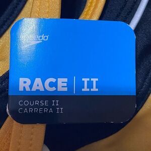 women’s Speedo Performance Race 2 One Piece Swimsuit Black Gold Size 30