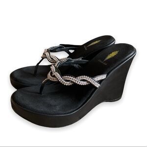 women’s Volatile Bridal platform wedge sandals black rhinestones Size 10
