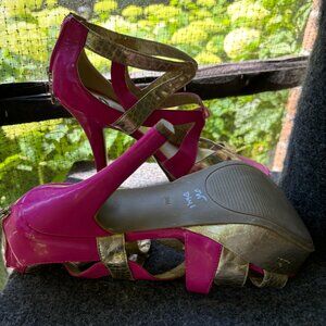 Gorgeous Pink and Gold platform shoes with a 3 and 1/2 in heel.