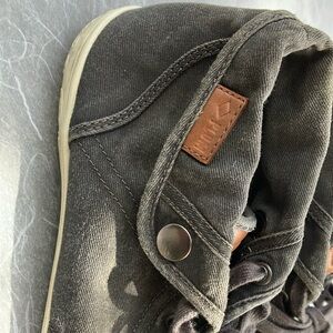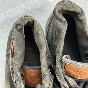 Some DISCOLORATIONS on shoe / soles as seen in photos but otherwise good condition. Trendy and lightweight euro style shoe. PLDM by Palladium women’s size 8 shoes - euro 38 canvas grey lace up shoe boot