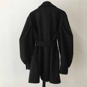 Vintage suit collar with waistband showing thin Lantern Sleeve Cotton warm trend woolen coat