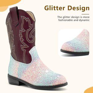 【Square Toe Glitter Design】These cowgirl boots for kids are suitable for all seasons and glitter design can be worn with jeans, shorts, dresses and more. Square toes that provide plenty of room for your child's toes without rubbing.
