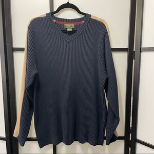 [XL] Eddie Bauer Men’s Navy Blue Vintage Thick Ribbed Knit 100% Cotton Heavyweight Sweater