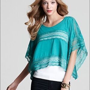 xs sea green lace inset free people crop poncho