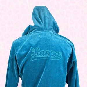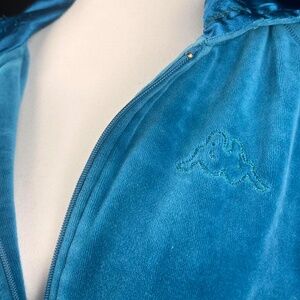 blue velvet vintage kappa zip up hoodie with embroidered details 🩵 #kappa #2000s #tracksuit #zipup #y2kvintage - silk hood - string missing from hood royal blue velvet, embroidered accents, vintage sportswear, oversized fit, 2000s nostalgia, zip front, plush texture, retro athleisure, detailed stitching, classic hoodie