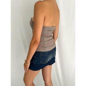 y2k vintage GUESS jeans preppy brown plaid button up strapless tube crop top
