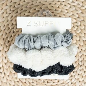 Z Supply 3 Pk Multi Colour Scrunchies, Grey, White and Black