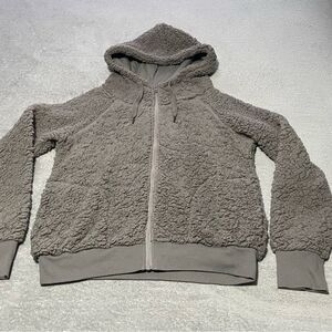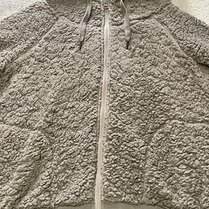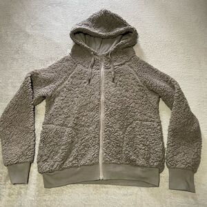Z by Zella up & over faux shearling zip hoodie in tan driftwood size medium very good condition- so plush and soft!