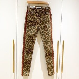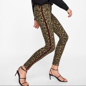 Brand new with tags. Leopard print skinny jeans from Zara from their premium denim collection. Mid rise with contrasting velvet side stripe. Size 2.