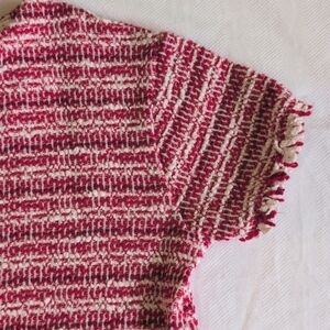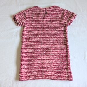 zara red boucle tweed shift dress with patch pockets, keyhole button back & fringe edges, girls size 6