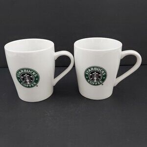 Starbucks Coffee Cup Mermaid Logo 8oz Ceramic Mug 2007 White and Green Set of 2