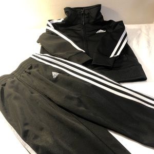 Adidas 3 stripe set 2 piece pants and zippered jacket 12 mos black