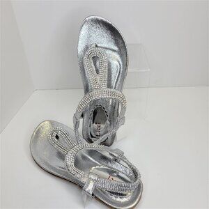SILVER Rhinestones Adjustable Strap Size 7 Toe Post Summer Beach Womens Sandals