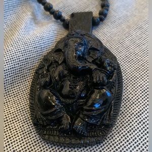 Unisex Northskull London Ganesha Wood Carved Pendant and Beaded Necklace