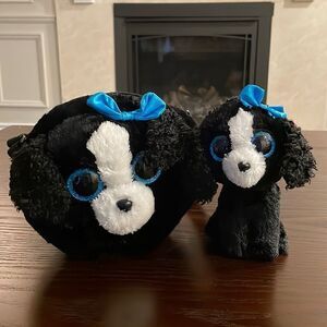 Ty Beanie Boos Tracey Dog Black White 6" Stuffed Plush Toy 2017 Blue Eyes W Tag