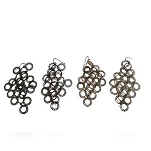 Boho Black Filigree Feather Rhinestone Bling Dangling Drop Statement Earrings