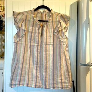 GAP Darling ruffle cap sleeve striped blouse L
