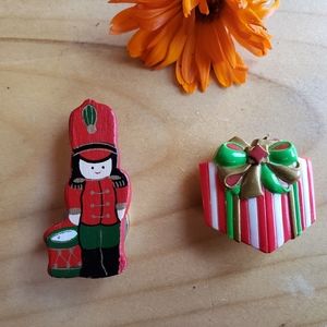 Retro Celluloid and Wood Novelty Christmas Button Covers