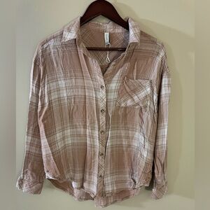northern Reflections Pink Plaid Long Sleeve Tailored Blouse Size XL