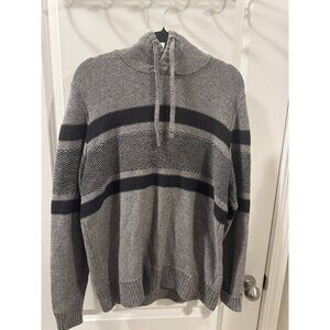 American Eagle Men's Medium Gray Striped Hooded Knit Sweater Pullover