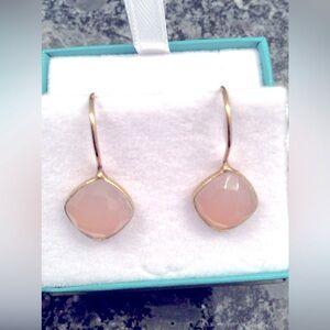 New! NATURAL GEMSTONE PINK CHALCEDONY 18K Rose Gold Plated Silver Drop Earrings
