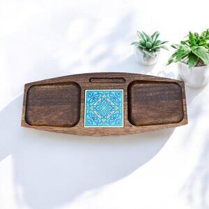 MCM Wood Charcuterie Board Platter w/ Ceramic Tile 1960s Wooden Serveware Japan