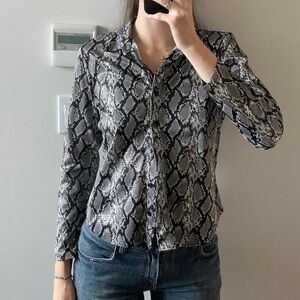 Button-Down Geometric Print Blouse with Cheetah Detailing