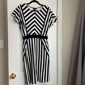 Olsen Navy and White Striped Stretch Dress