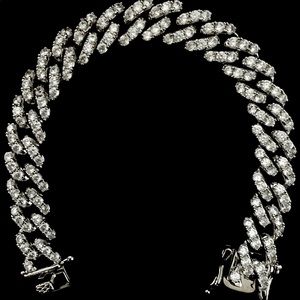 NEW Silver Cuban Link Bracelet with CZ Stones
