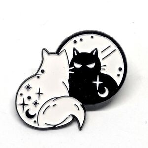 Black Cat & White Skull Pin