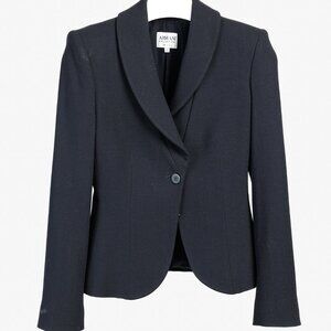 Armani Collezioni 2001 Vintage Minimalist Shawl Collar Navy Wool Blazer