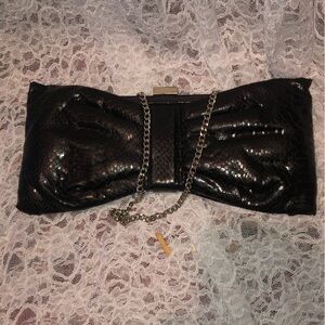 Danier Black Leather Crossbody Clutch with Chain Strap