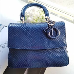 Christian Be Dior flap Bag in metallic Blue python
