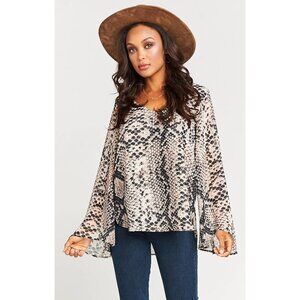 SHOW ME YOUR MUMU Hippie Dippie Top Blouse SZ Small Snake Skin Print Semi Sheer