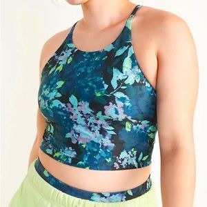 🌟SALE🌟NWT Old Navy PowerSoft Longline Sports Bra, Blue Watercolour Floral