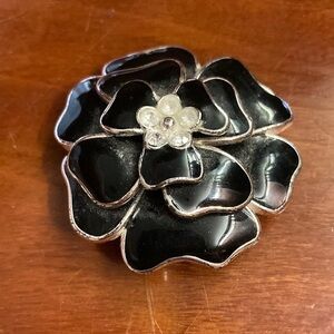 Vintage Art Deco Rhinestones Floral Circle Brooch