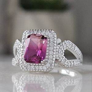 Pink & Purple Pear cut Gemstone Ring, 925 Sterling Silver Charmed Aroma