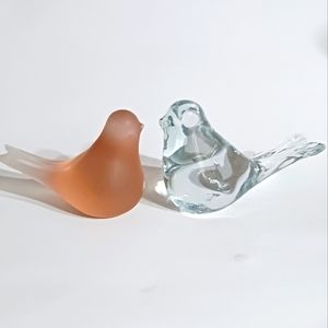 Pair of birds, frosted pink and clear glass paperweight