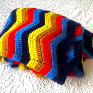 Handmade Knit Blanket - Multi Coloured Patches