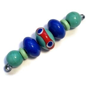 As Low As $2 Turquoise Red & Blue Handmade Lampwork Artisan Rondelle Beads (5)