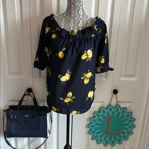Abound Lemon Print Cotton Tie Front Top Lace Neckline Summer Size Small Blouse S