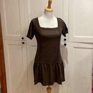 Jersey tunic top, pleated mini dress, bohemian, short sleeve, size small