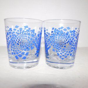 2 Vintage Ikea Clear Royal Blue Design Lowball Tumbler Glasses