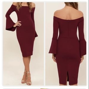 LULU'S - All She Wants Off Shoulder Midi Dress