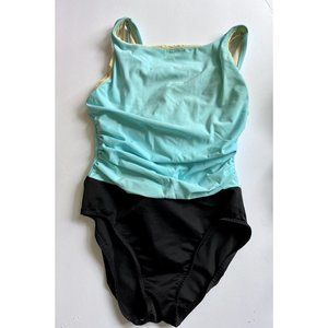 Miraclesuit Sz 12 Black With Neon Blue. Miracle Suit Swim Suit NWT