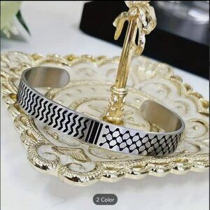 2/50🍒NWT Silver Palestinian Keffieh/ keffiyeh/ Shemagh Adjustable Cuff Bracelet