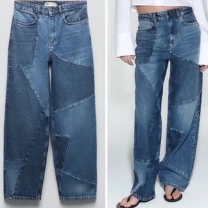 Zara Patchwork Denim Overalls Size Small