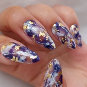 COPY - Amethyst/gold flake, marbled /geode luxury nails