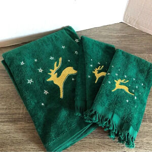 Christmas pillowcase woven canvas textile beige green accent decor textile deer