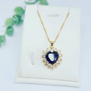 Dark Blue Rhinestones Heart pendant with a chain